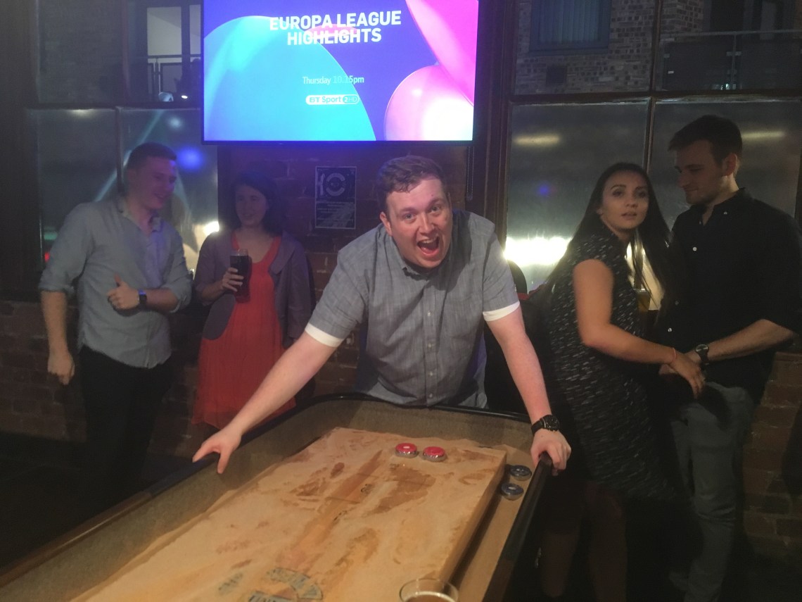 Next, a super quick game of beer pong while waiting for a taxi. how this game went is summed up by the video above… Liam , lee and JohnJohn were off their game and conro ultimately won easily. 2 games down , score 1 – 1.