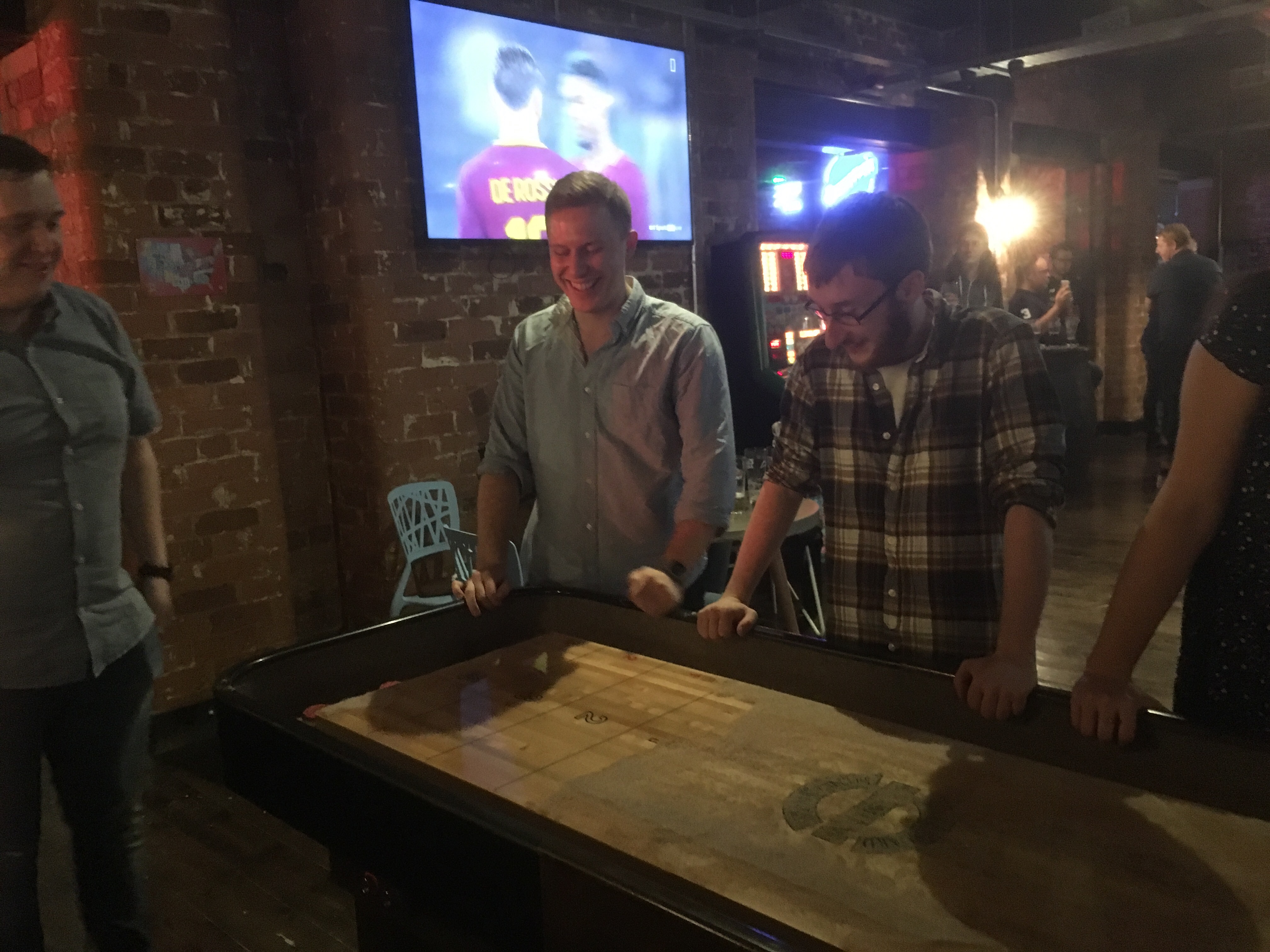 And then, the main event; Shuffleboard. On the sandiest table I’ve ever played on. Here you could tell that the presssure was beginning to get to the boys as stones were flying off in all directions. However, as a team game, Liam streaked into an early lead only for conro to pull it back so it was close going into the final ends.