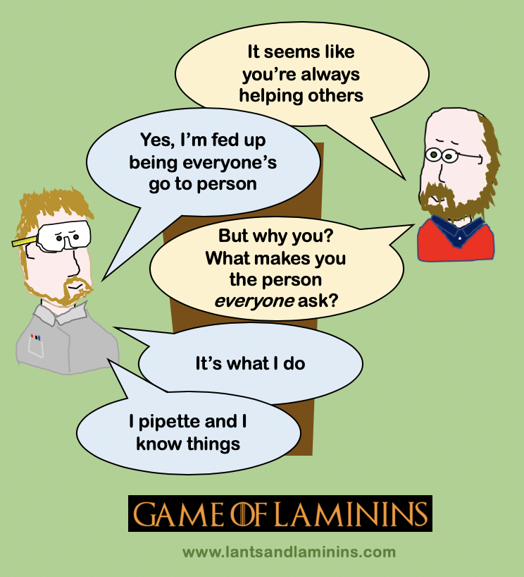I spent the afternoon in the lab today and experienced this first hand. At least 6 people asked me where Lee was, some of them on multiple occasions. The perils of being useful.