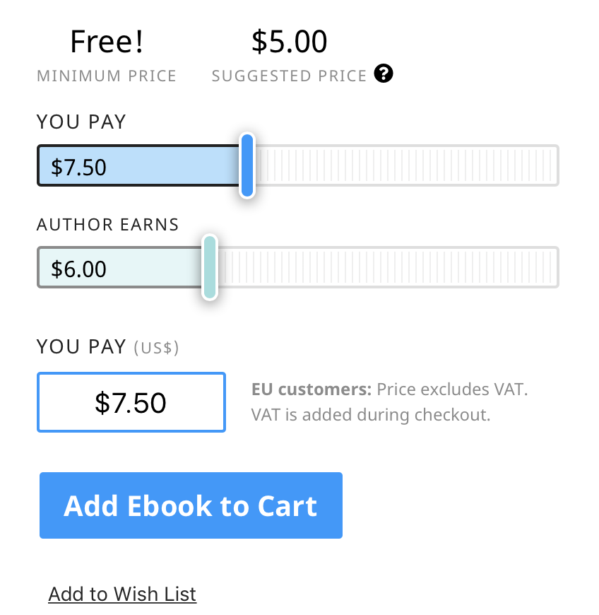 When you go to the site, you have the two sliders that you can adjust to whatever you think is appropriate. Right now, the cheapest option is $5 (or free with the code if you are quick.