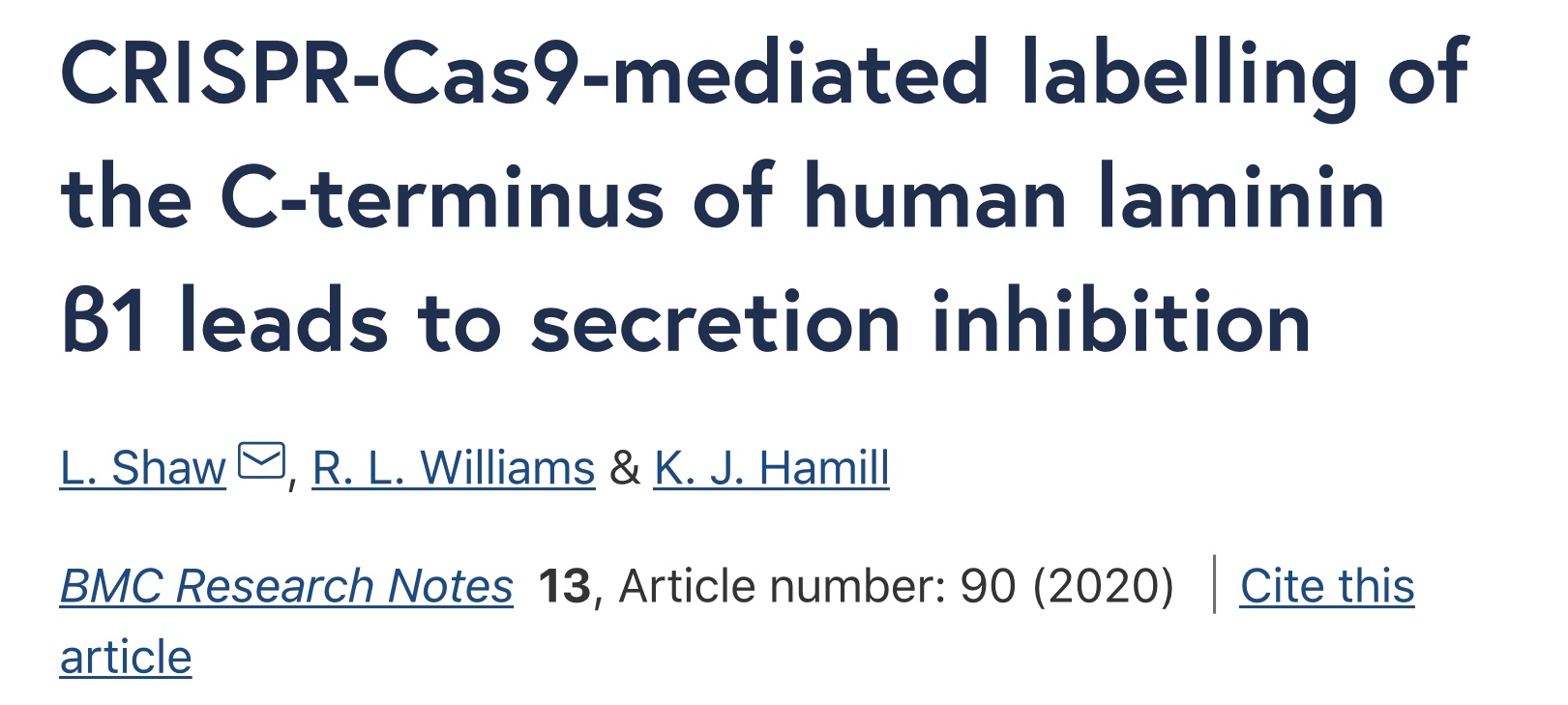 CRISPR-Cas9-mediated labelling of the C-terminus of human laminin β1 leads to secretion inhibition