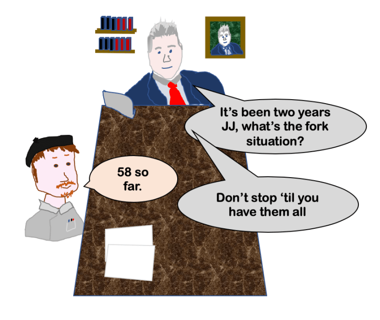 We have a mystery. For years forks have gone missing from our communal kitchen. Not one or two occasionally being taken home then reappearing a few weeks later. Nope. I bought 50 really cheap forks a couple of years ago and as of this week they have all gone.