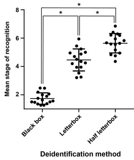 What needs to be shown to convey the required message will dictate the method that is most appropriate. However, in all cases our data show not just consent, but fully informed consent that tells are participant how the image will be presented and what that means in terms of deidentification.
