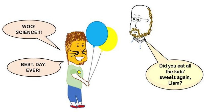 It has been an adventure. The science in the an thesis doesn’t capture nearly enough to give appreciation of the size of the gap in our team that has been left when Liam finished. Liam is a big character and great fun to be around. Some of the social, conference and public outreach pics are below. I also really encourage you to read some of Liam’s contributions to the blog over the years, they provide quite the insight into the mind of a typical PhD student Liam.