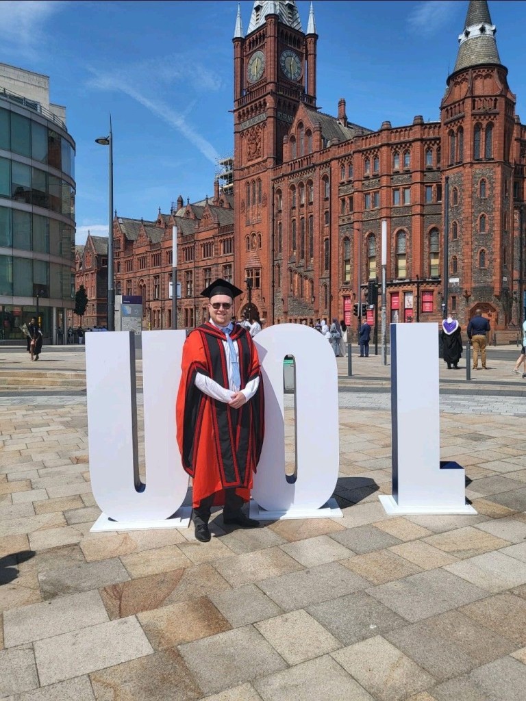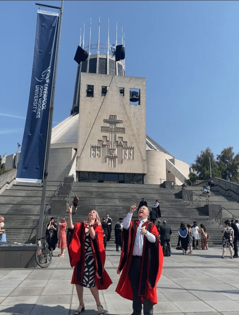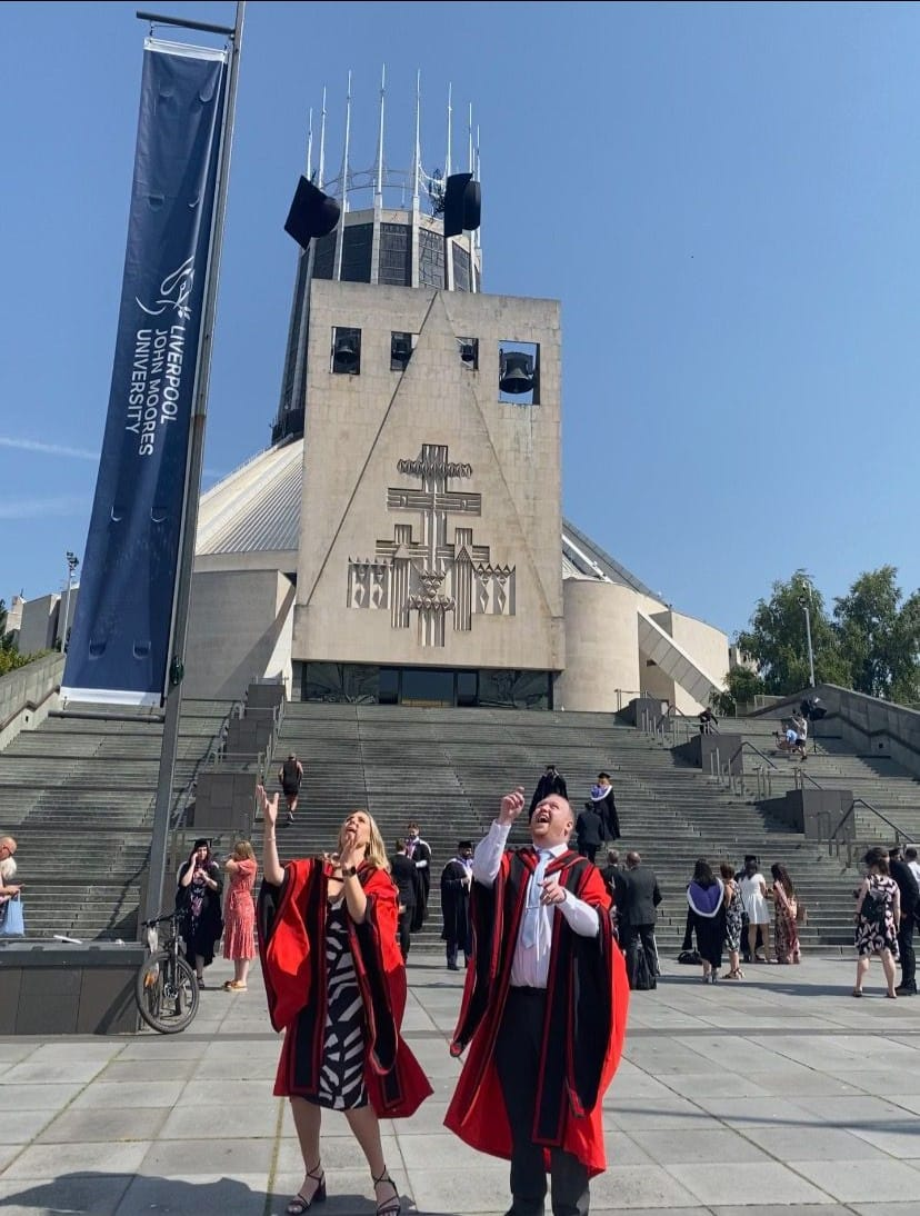 Yesterday, the hottest day ever in the UK, Liam donned his newly acquired superhero PhD robes and took the final steps of his PhD… up the stairs to receive his diploma. The end of a long journey with my team and his development. As you can see below, completing the PhD made him much happier than finishing the Masters!
