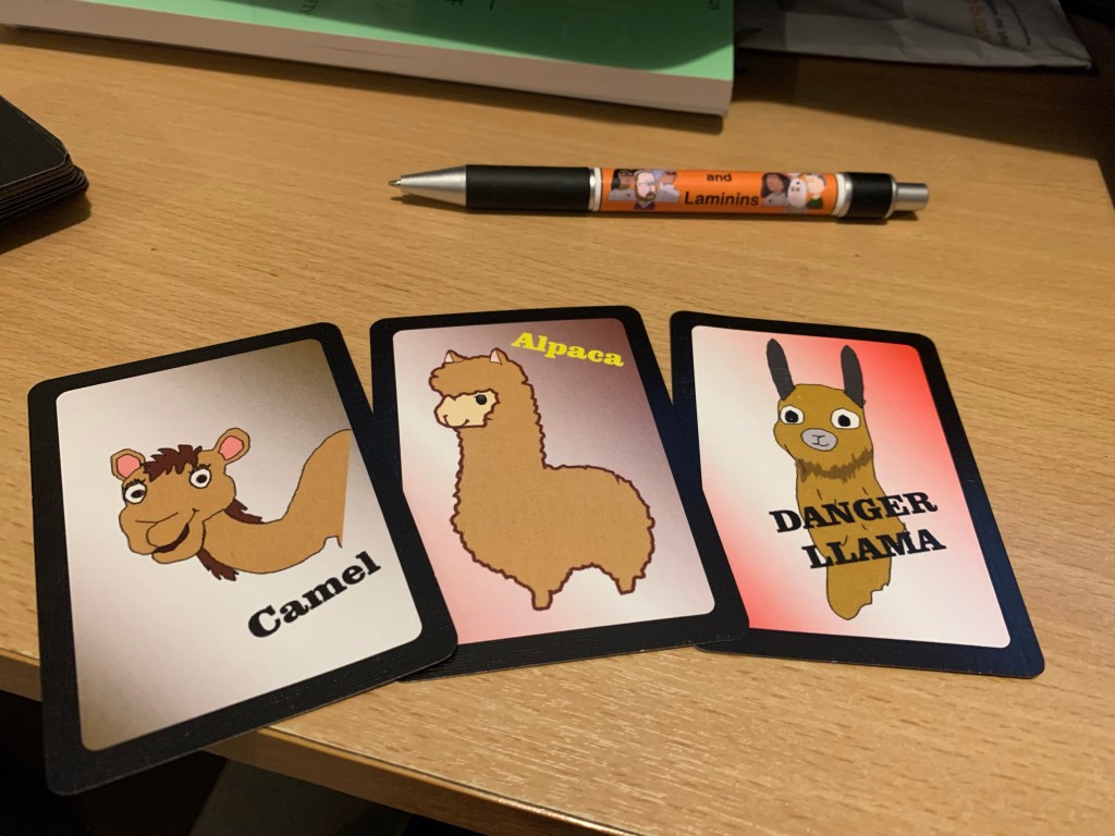 An easy game based on chase the ace or scabby queen, but exploiting the differences of the Danger Llama deck. This works really well as a decision maker (e.g. who buys the next round). Playable with any number but probably best with 4-8.