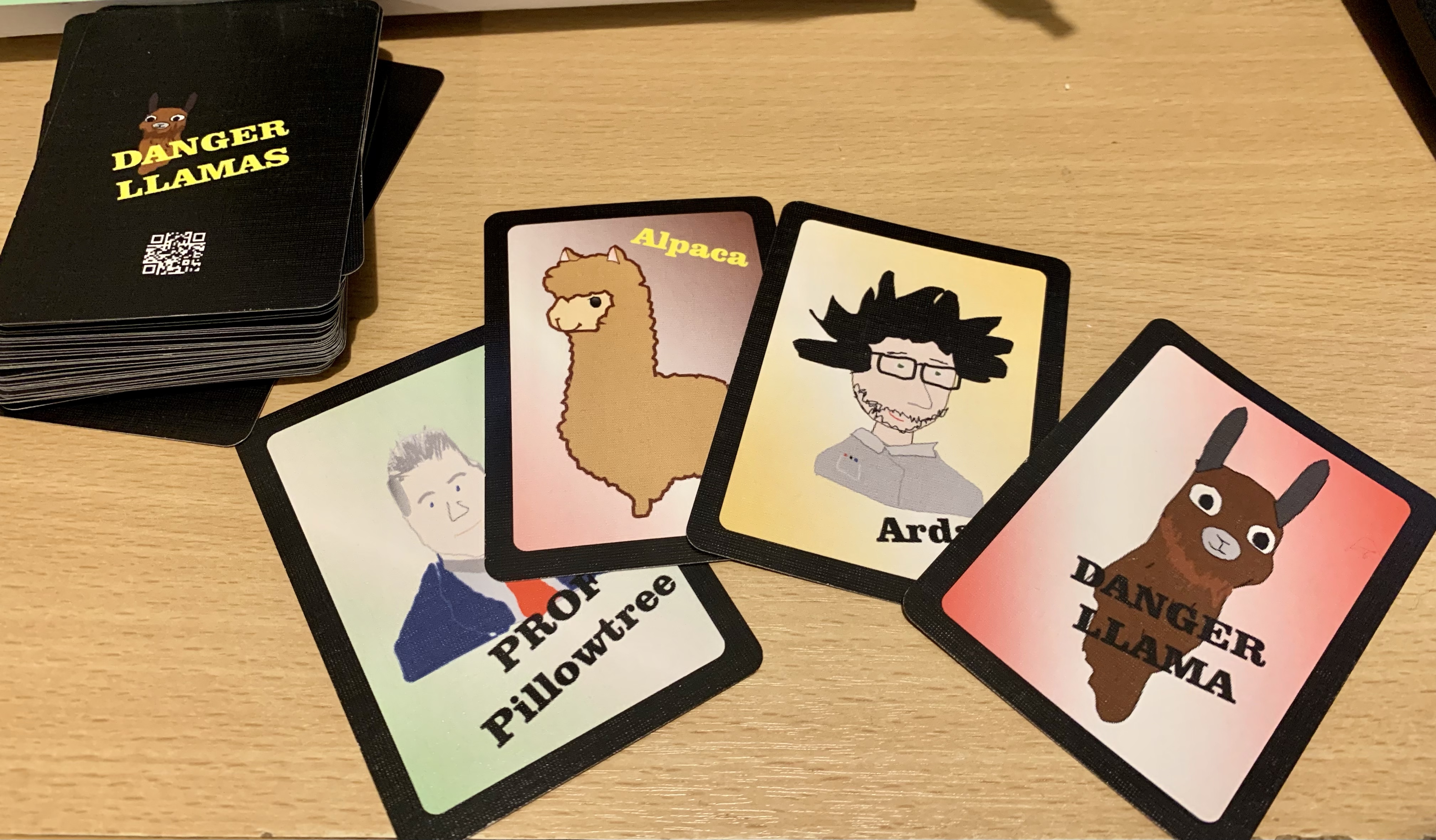 Danger llamas was borne out of a game of “Skull and Roses” in a pub. As more and more people joined the party, the game had to grow to, adding not just more players but also more rules. The result is an intriguing game of bluff and risk management, camels, alpacas, blot lords and dangerous llamas.