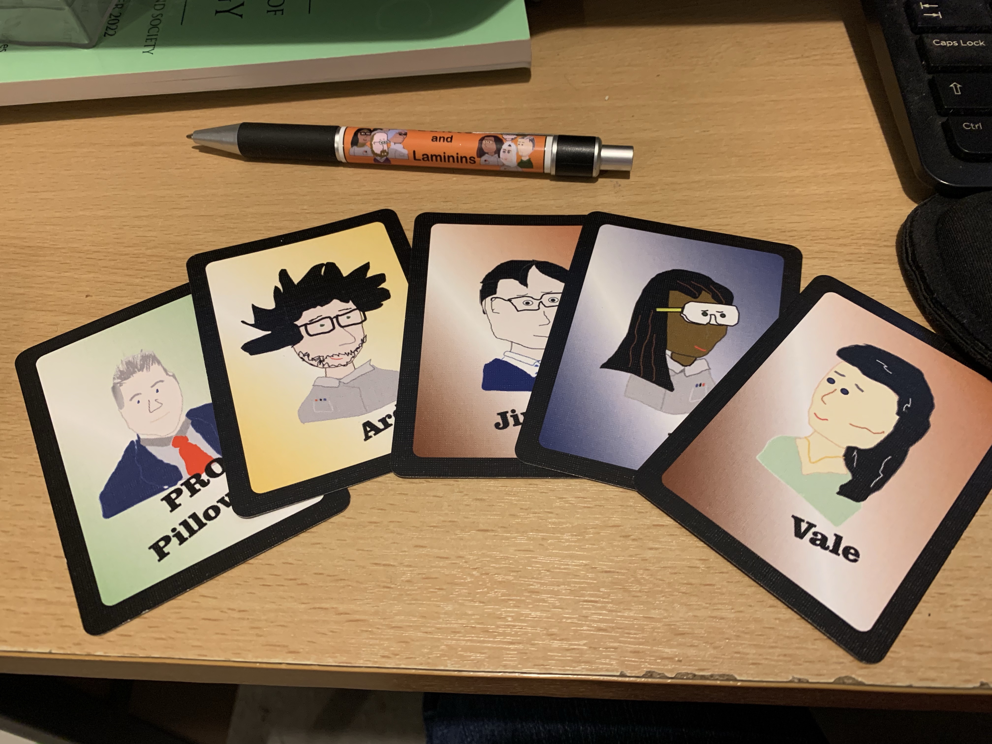 The 54-card Danger Llama deck contains 6 Danger Llama cards, 24 lab character cards (split into 4 different colour categories), 6 Blot-lord cards, 6 Camel cards, 6 Alpaca cards and 6 Safety Steve cards. It is not available in the shops but was produced as end-of-year holiday gift for the lab team. If anyone would like their own deck, then let me know and I’ll organise another print run.