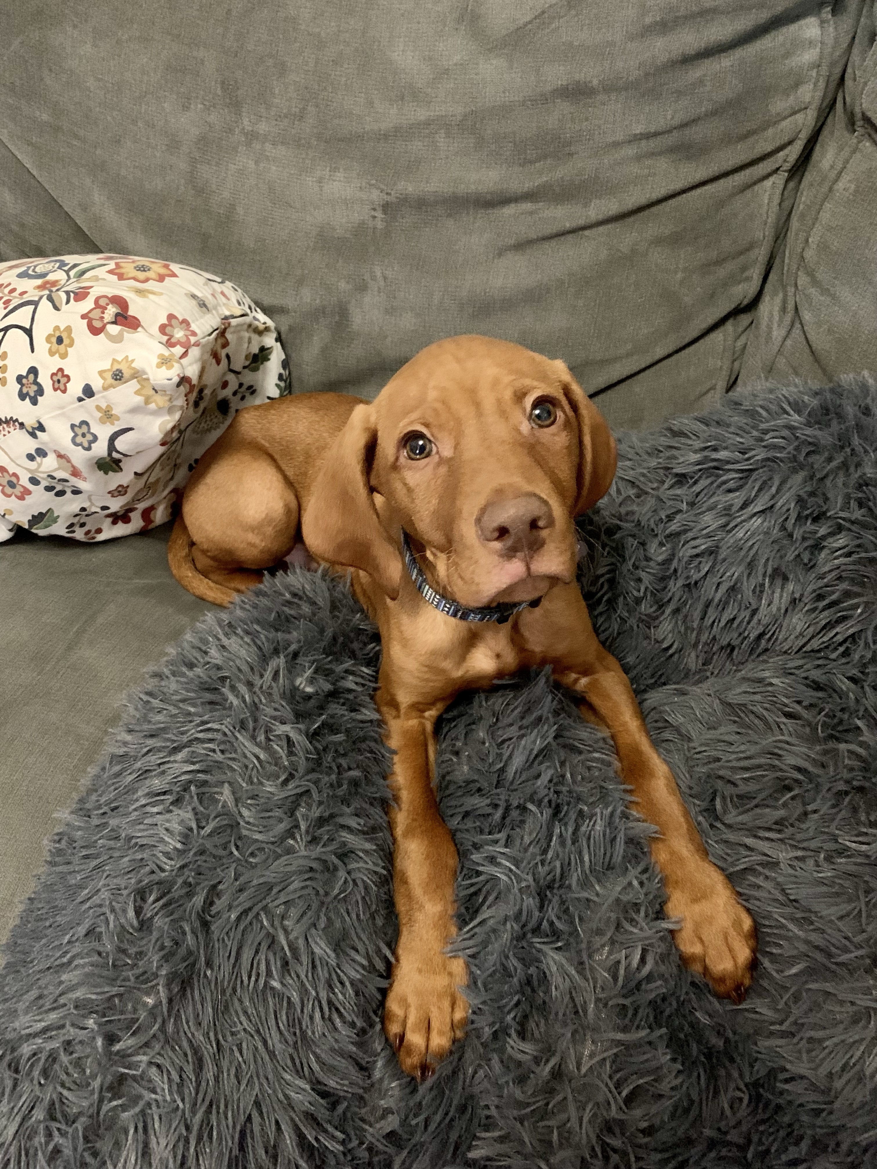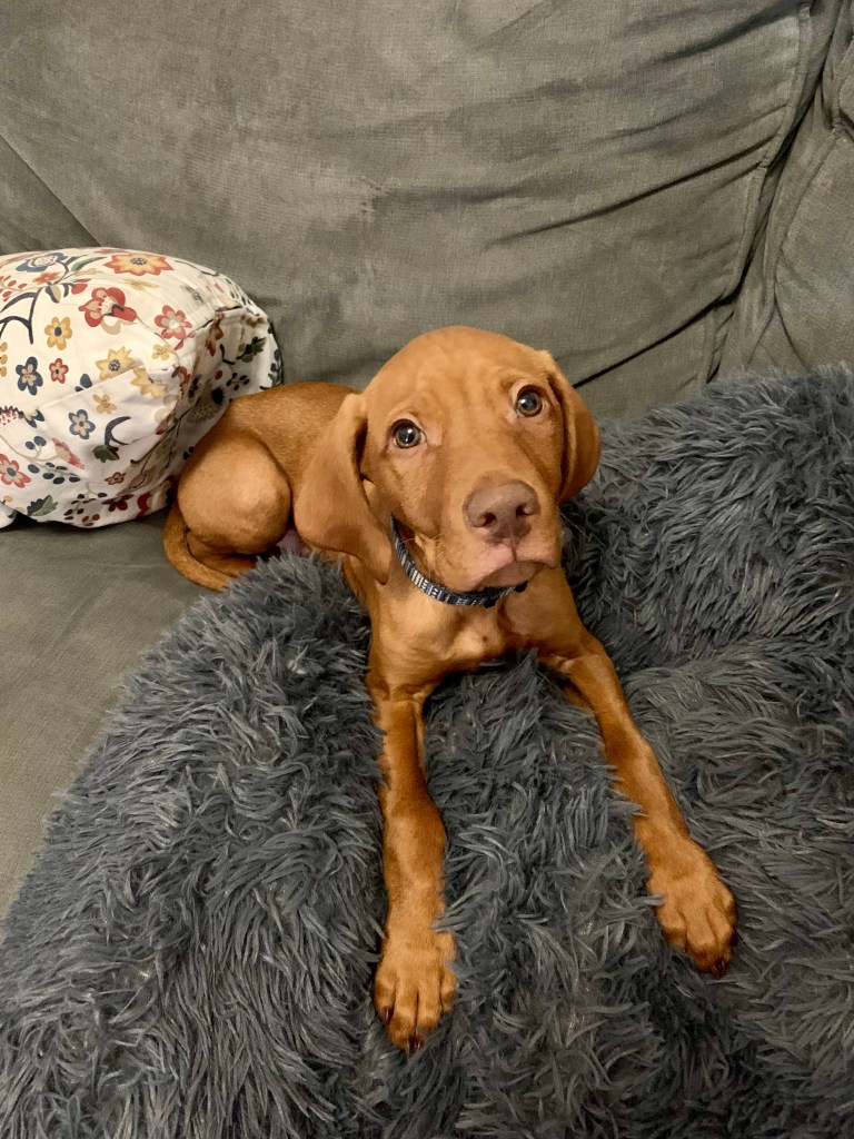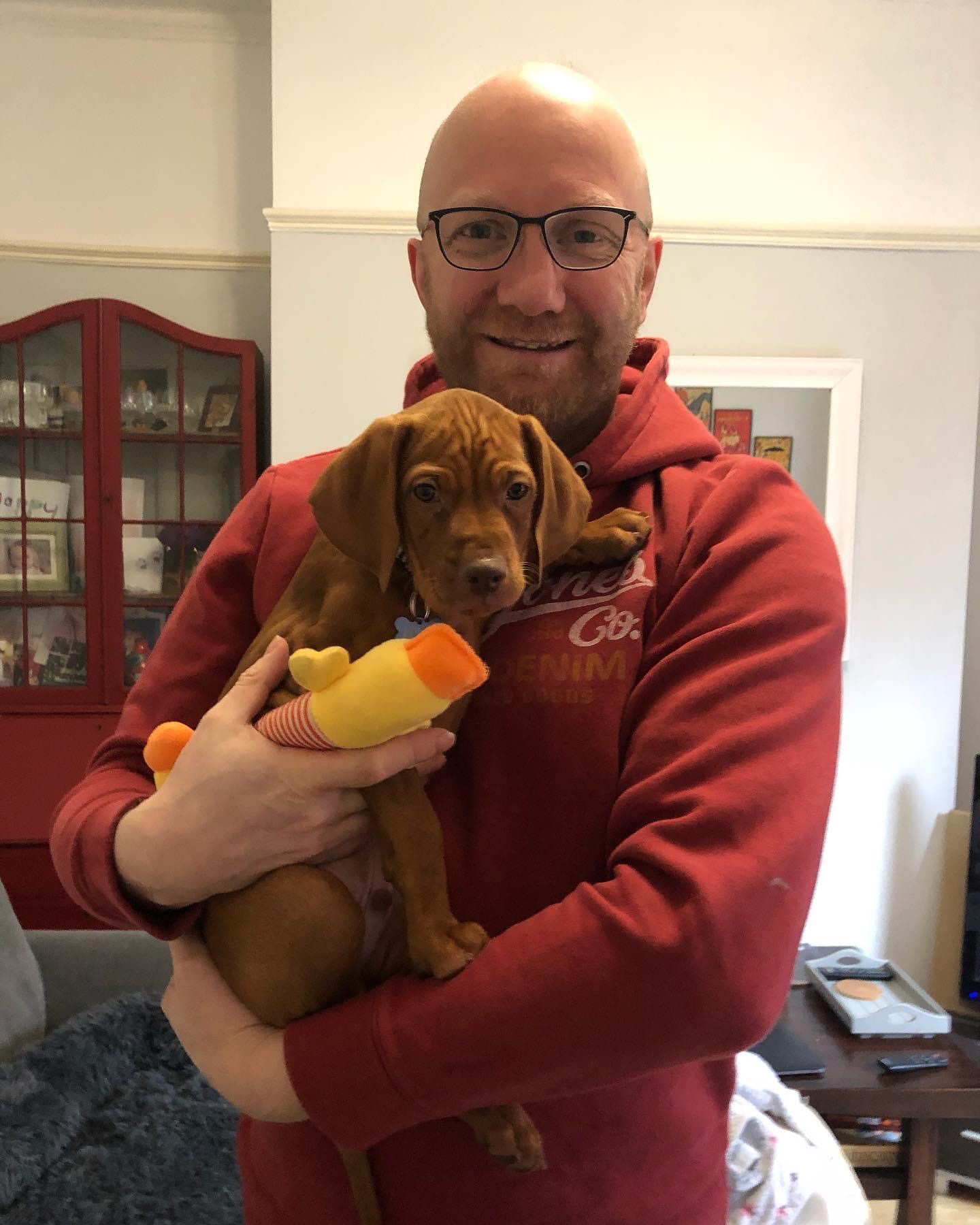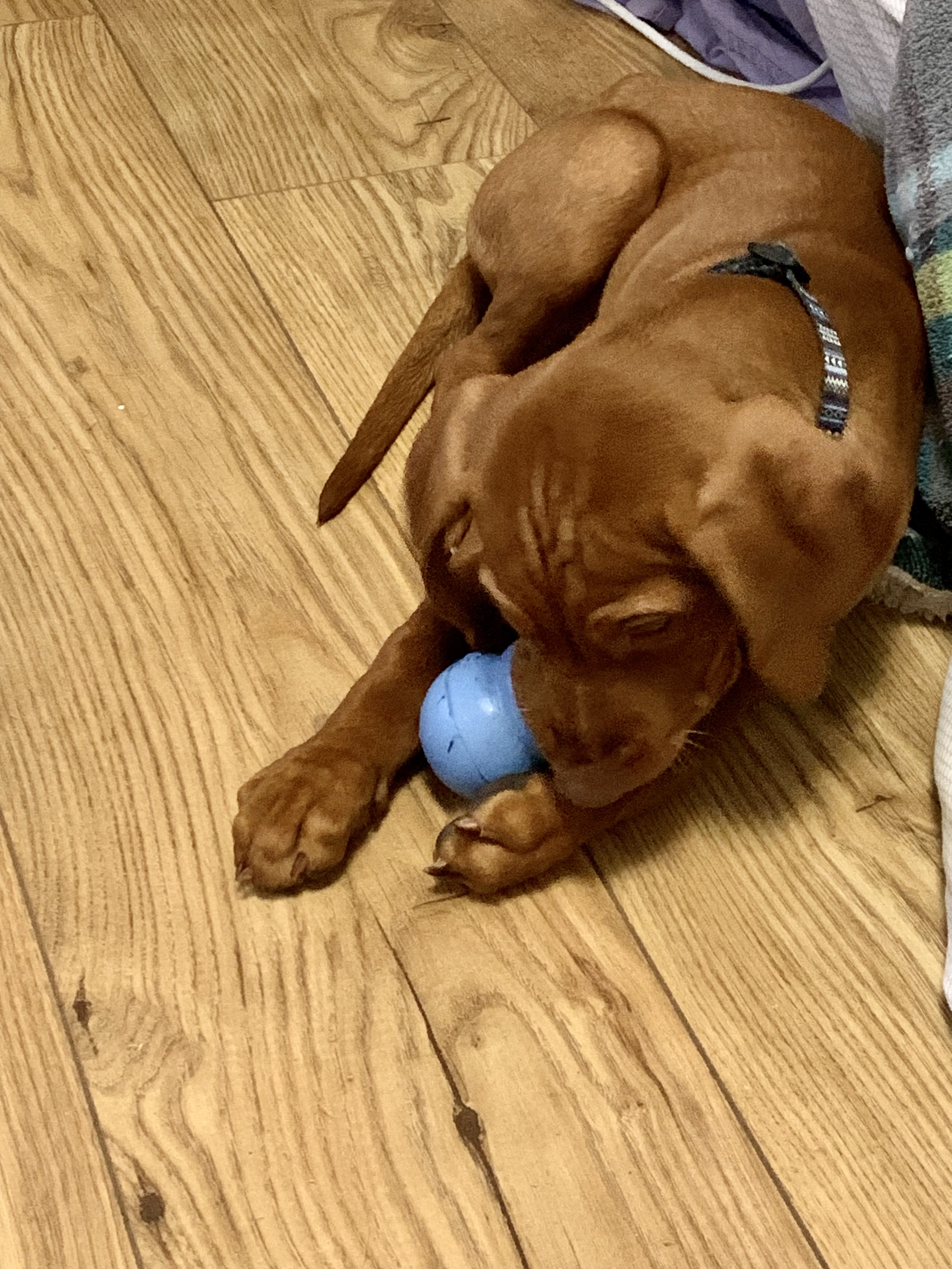 As promised, a pupdate, a couple of weeks after Angus the viszla puppy joined the team. Angus has been working on his CV and can now add: learning how to identify which postmen will need attacked, cat terrorisation, growing extra-long legs, encouraging the installation of a baby gate, under the sofa hiding, and skills in destruction.