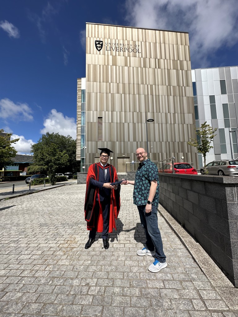 There are many steps on the winding road to PhD. When you do half your degree in Thailand and the other in Liverpool, there are some extra ones. When you add in a global pandemic that disrupts travel plans and generally throws things up in the air, that road becomes even more tortuous (some might say torturous!). However, the final steps over the stage to collect the degree are the sweetest.