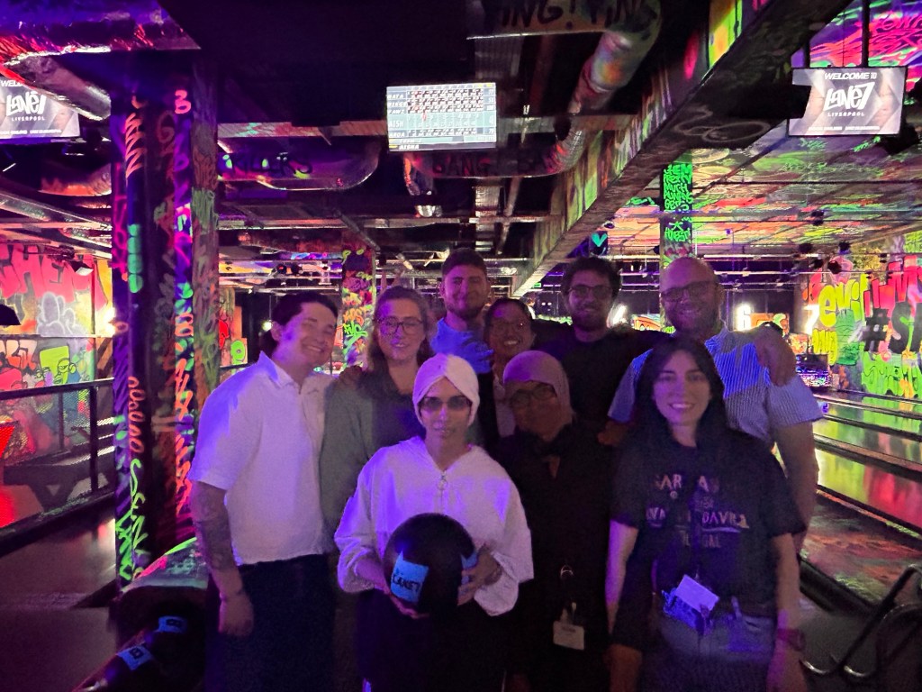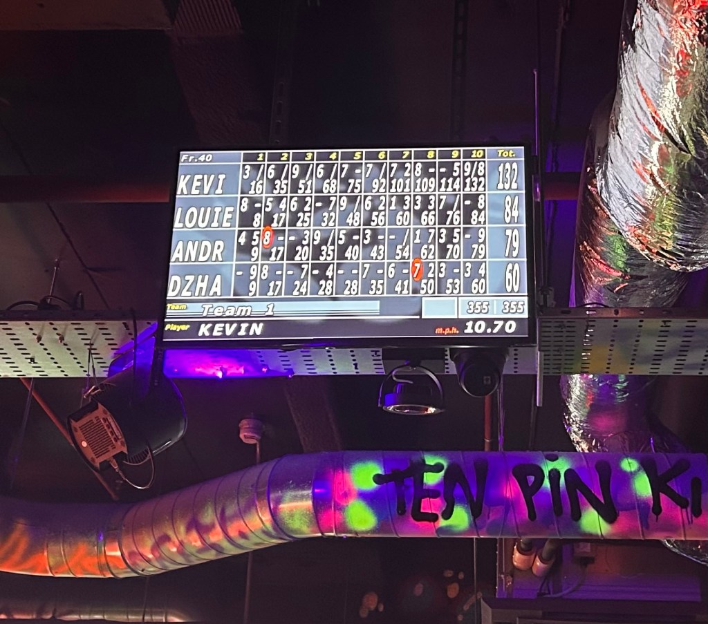 “I’m going to win” says Louie as we set off from work for our social evening playing 10-pin bowling prior to Bilge’s fond farewell later this week.