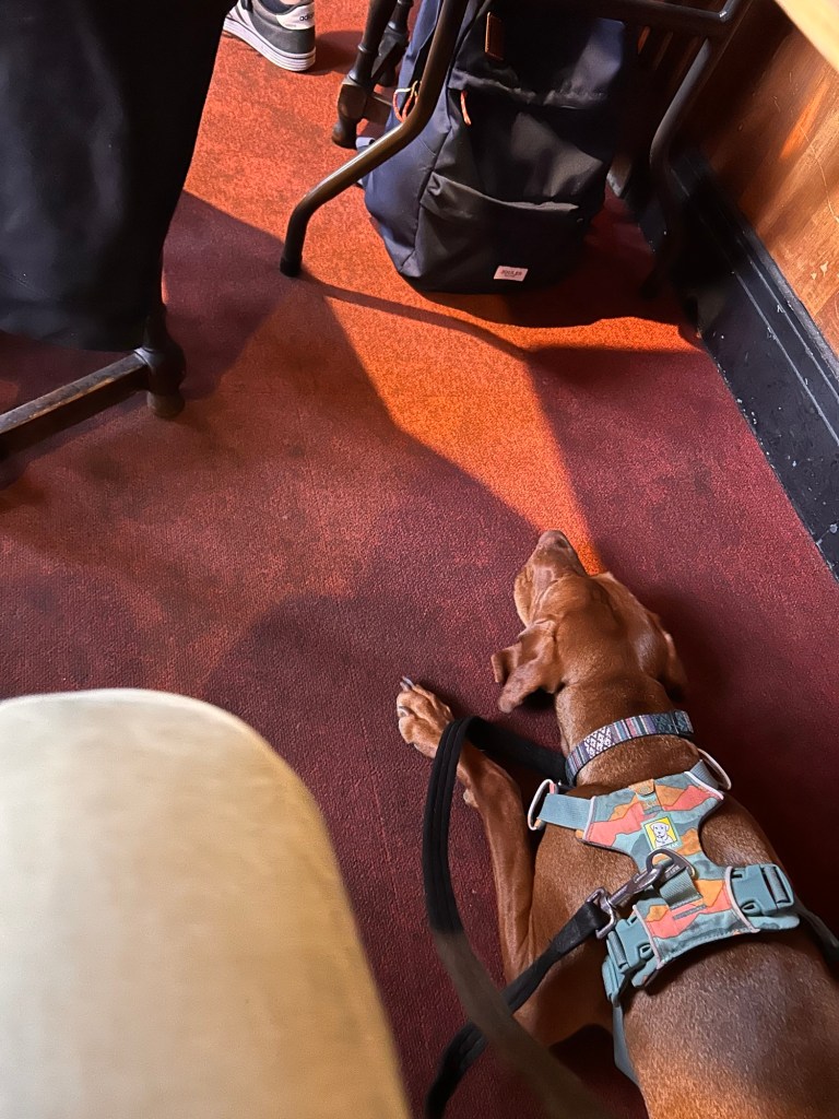 Angus resting between talks