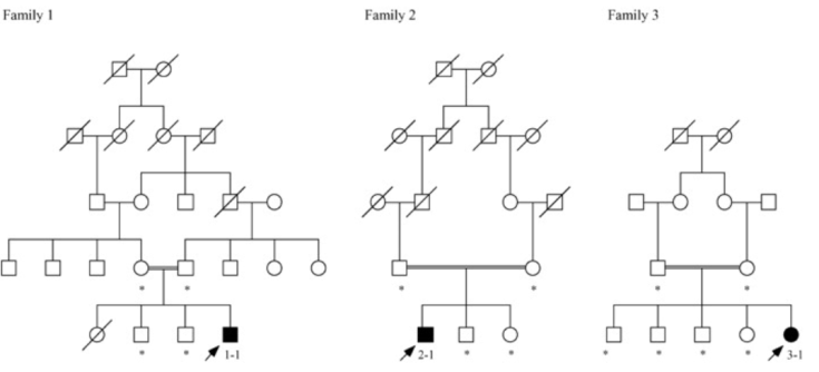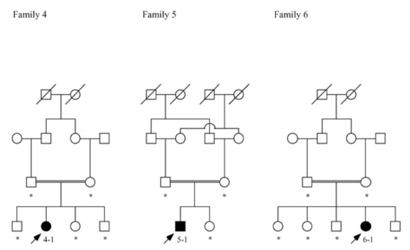 The 6 pedigrees above all came from patients with a disease known as “laryngo-onycho-cutaneous syndrome” (LOCS). This is a rare disease where patients present with over production of granulation tissue in any of their exposed mucous membranes including eyes, throat and also have non-healing skin erosions. At the time this study began, the cause of the disorder was not yet known. However, a group of patients had presented all with very similar symptoms and all with distant relatives to the same part of the world.