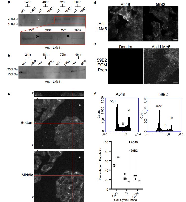 Some cells produce a long form of laminin b1 and some cells produce a short form. In 59B2 there is a mixed population whereas in WT there are only cell type