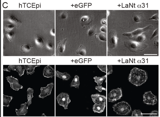 1. LaNt α31 makes epithelial cells spread more and migrate less