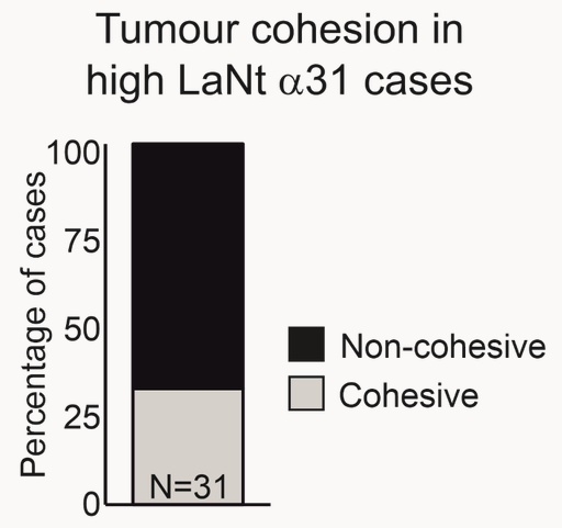 In the short-term, this finding of change in invasion style led us to reassess some of the tumours we had analysed earlier. Specifically, we looked at those tumours with high LaNt expression and we observed that they looked different, less cohesive which implies that there these in vitro observations could also be reflected in real-tissue behaviour.