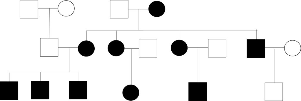 Pedigree Quiz Q3 You know what to do… (later questions change the style!) What type of inheritance pattern best describes the pedigree above? Autosomal Dominant Autosomal Recessive X-linked Dominant X-linked Recessive Mitochondrial Y-linked Non-Mendelian Share this: Click to share on Facebook (Opens in new window) Facebook Click to share on X (Opens in new window) X More Click to share on WhatsApp (Opens in new window) WhatsApp Click to share on LinkedIn (Opens in new window) LinkedIn Click to share on Pinterest (Opens in new window) Pinterest Click to share on Pocket (Opens in new window) Pocket Click to share on Telegram (Opens in new window) Telegram Click to share on Reddit (Opens in new window) Reddit Like Loading...