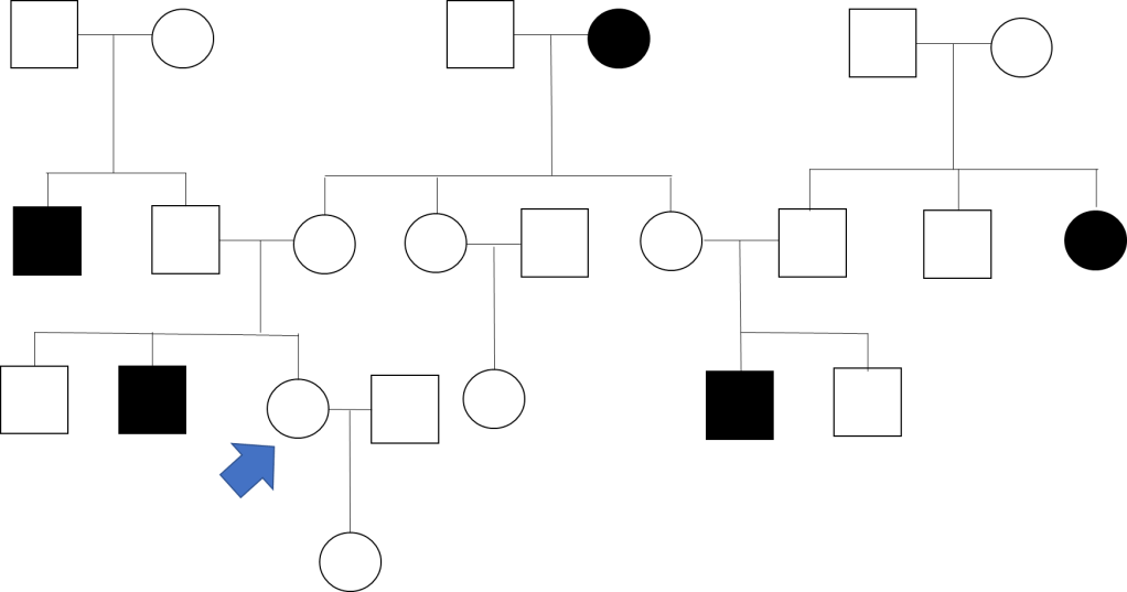 Explanation: So, we’ve have autosomal dominant before, I expected you to get this right! However, I wondered if you might be tricked by there already being 3 affected children. As you know, when we have Aa parent x AA (A = normal, a = mutant). Each child will either get a “A” from the father or a “a” with equal likelihood of both. If they get the “a” then they will have the disorder. Therefore, 50/50. The important point to remember though is that each child is independent; just because you have three affected already doesn’t change the odds of the next one being affected as well.